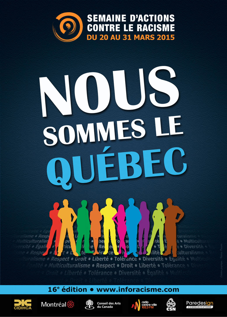 SACR-2015, 16e ÉDITION : « Nous sommes le Québec », le thème de la 16e édition de la SACR nous rappelle la nécessité de bâtir un avenir commun, celui d’un Québec inclusif. Et nous le voyons poindre à l’horizon, depuis près de 16 ans maintenant dans le regard, les mots et les gestes de nos partenaires de la SACR. De ceux et celles qui de leur propre initiative ou portés par un projet de groupe, choisissent d’ouvrir le débat et de partir à la rencontre de l’autre.