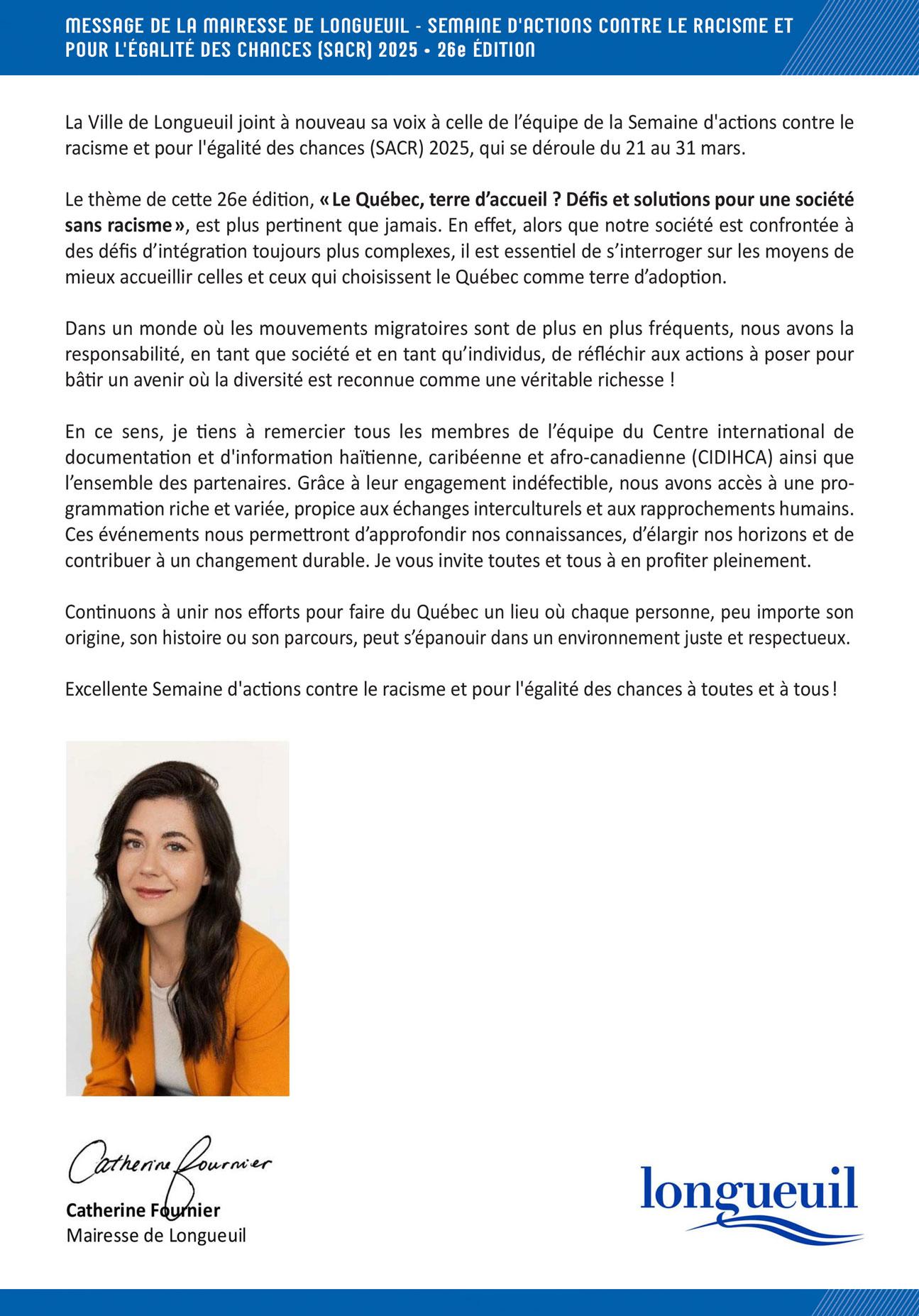 • MESSAGE DE MME CATHERINE FOURNIER, MAIRESSE DE LONGUEUIL •