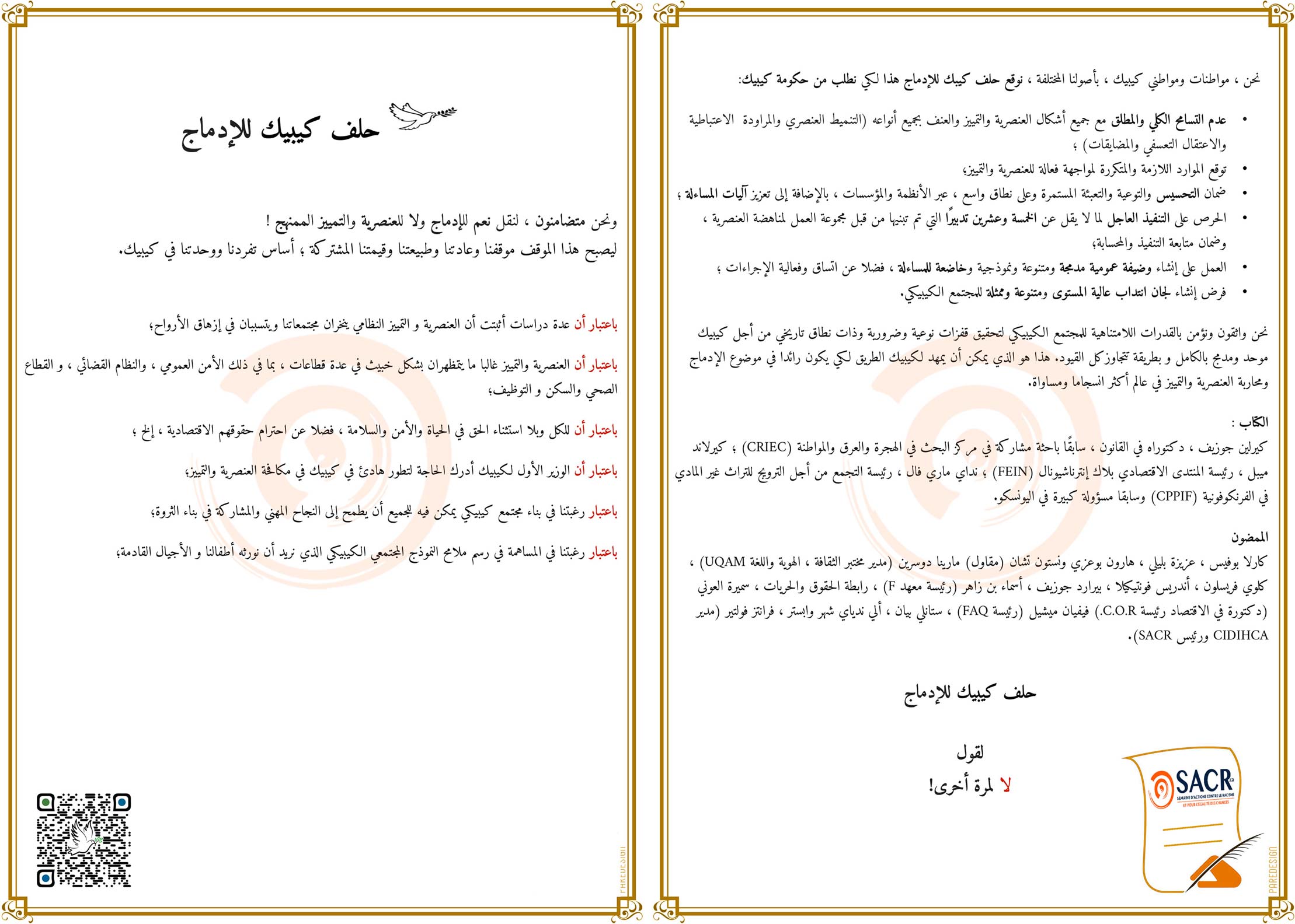 Pages de pétition traduites en français, anglais et arabe